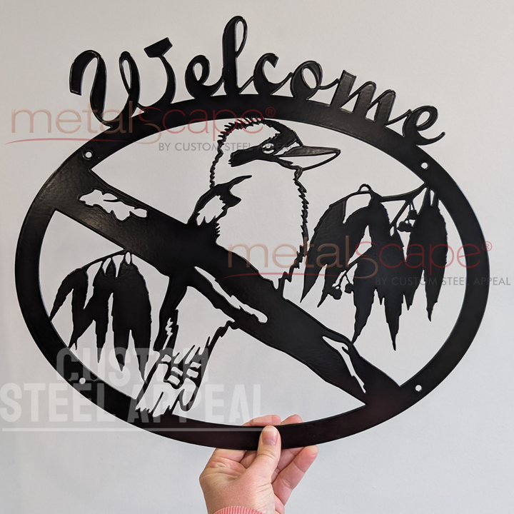 Add a touch of Australian charm to your home with our Kookaburra on Branch Oval Welcome Sign. Featuring a proud kookaburra, this piece captures the spirit of one of Australia’s most iconic birds.  The oval shape adds a soft, modern touch, while the steel naturally rusts to a warm patina that suits any garden or entryway.  A timeless piece that celebrates Australian birdlife and makes every arrival feel special.