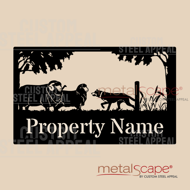 Merino Sheep, Kelpie & Wheat - Farm Property Sign