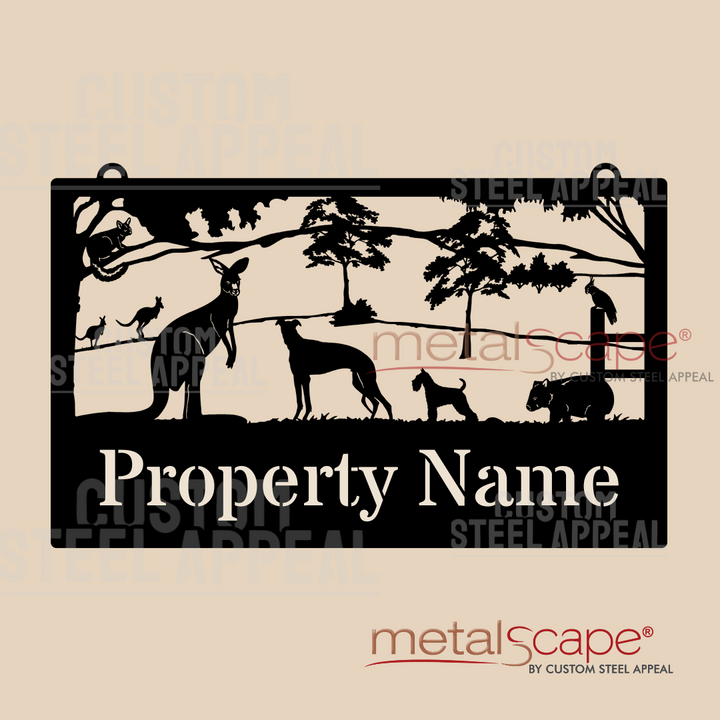 Possum, Kangaroos, Dogs, Wombat, Cockatoo - Farm Property Sign