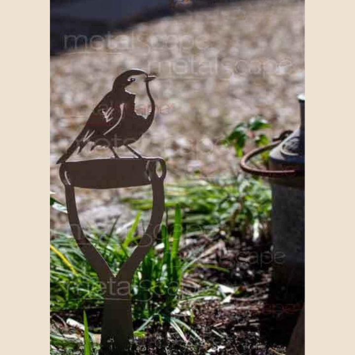Bring a touch of Aussie charm to your garden with our Robin on Spade Handle garden art. Laser cut from quality weathering steel, this design features a beautifully detailed little Robin perched atop a classic spade handle – a nod to both nature and the gardener's spirit. Over time, the metal develops a rich rusted patina that blends perfectly with outdoor landscapes, no maintenance needed. Ideal for garden beds, pathways, or pot displays, it adds character and a cheeky native flair to any outdoor space.