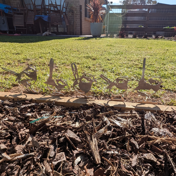 Our bundle includes all 5 adorable wren designs, each cut with a spike for easy placement in a pot, garden bed or along a pathway or anywhere else that needs a little extra birdlife!