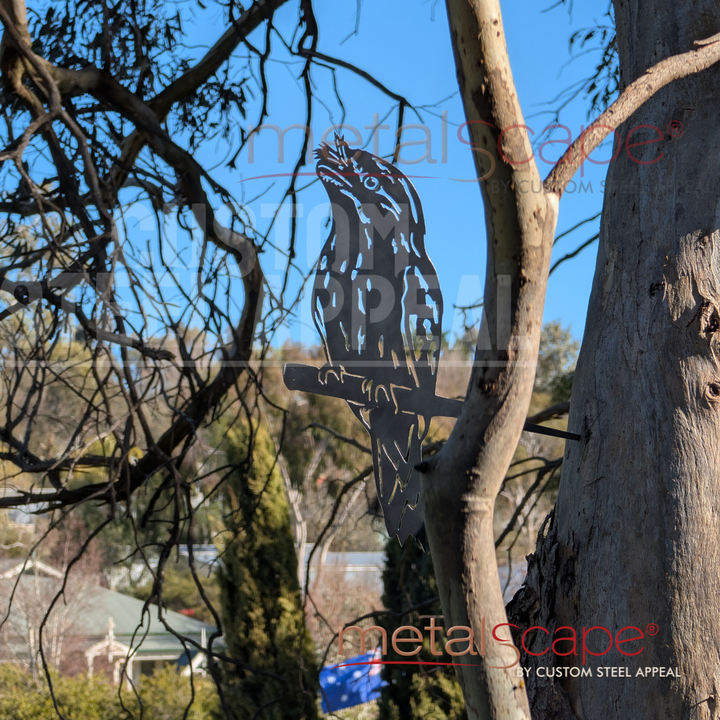 Add simple beauty to your garden with our Tawny Frogmouth Tree Spike. Featuring a beautiful Tawny Frogmouth owl, this piece captures the spirit of one of Australia’s more camouflaged birds. Laser cut from quality weathering steel, it’s designed to age gracefully with a natural rusted finish that suits any outdoor space. Mounted on a spike for easy placement in tree trunks, stumps or posts, it creates a dynamic focal point from every angle. A simple and elegant tribute to native wildlife.