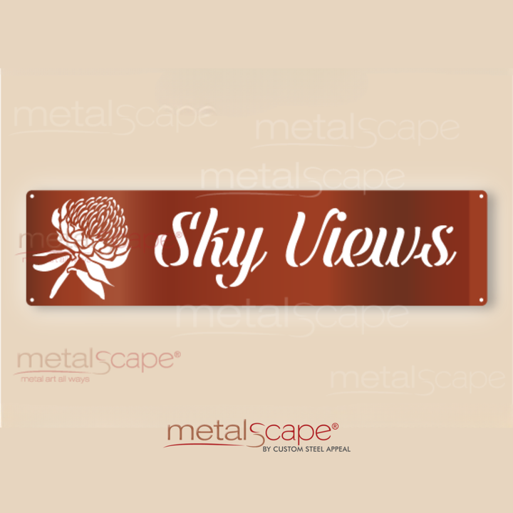 Add a uniquely Australian touch to your home with our Waratah Native Flower Property Sign. Each sign is precision cut from 1.6mm weathering steel and designed to age beautifully outdoors. Choose from three practical sizes and a selection of finish options to suit your home or property style. Whether mounted on a gate, fence or letterbox, these signs are both functional and decorative – proudly showcasing your property name with natural charm. A perfect blend of durability and Australian design for rural, coastal or suburban settings.
