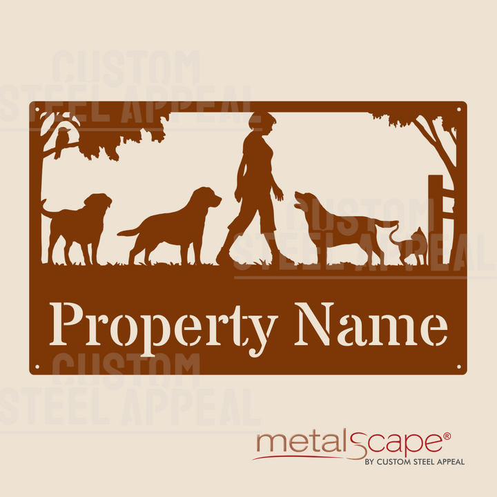 Give your entrance the standout it deserves with our eye-catching farm property sign – a striking blend of rural pride and durable craftsmanship. Featuring laser-cut silhouettes of a woman and her three dogs, this design adds a personal and welcoming touch to any gate, driveway, or shed. Made from quality weathering steel (not mild steel), it naturally develops a rich rusted patina over time, blending beautifully with the Aussie landscape. Whether you’re showcasing your animals, naming your property, or simply adding character, this custom-made sign is built to last.